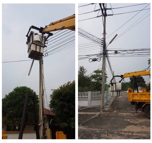 The committee fixed the defective of the street lights and replaced new LED light./ แก้ไขปัญหาไฟฟ้าดับและขัดข้อง ภายในหมู่บ้าน